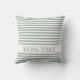 Utsidan av grått-Grönt. Klassisk maritim Grått-Grönt strimlade utomhusdekorkuddar med Boat Namn, Beach House Namn eller Beach Resort template. För dekoration inomhus vid kusten väljer du bomull eller polyetermaterial. Rättvisa vind och följande hav! Enkel att anpassa den randade kudden för yttre sittplatser som är gjorda med oceanen kärlek © Design y.BEE SEA