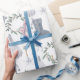 Papper julomslutning med ett skandinaviskt stil, allt i skuggor av grått och grönt med renar, lager, Julgranar och vrak. Ta en paus från den traditionella rödhåriga och grönt-julklappen och prova den här snyggten och roligten.
