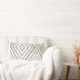 Den här 13-tums x 21-tums ländryggen i dekorativ kudde har en modern diamantdesign i den populära grått-grönt-skuggningen som också kallas Oktober Mist på vit bakgrund.
