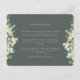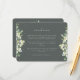 Ett platta mottagningskort för grått-grönt med mörk- och med en kant av handmålade snöbär och eukalyptus på framsidan och en krans på baksidan av kortet. All text är helt redigerbar och de spridda punkterna längst fram och bakåt kan tas bort före beställning om du vill. Det här kortet finns med alternativa botaniska utformningar, i porträtt-format och i olika färger. Visa Samlingen i min butik om du vill se alla alternativ och samordningsposter.