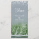 Vackert grått och grönt vintermiddagsmeny för gräs träd bröllop eller speciell händelsemeny. Redigera den här 4-kursmenyn med din egen ord. Perfekt för vinterbröllop eller händelser i grått grönt. © Design och ursprunglig vattenfärg och gouacher-målning av Sarah Trett. www.sarahtrett.com för www.mylittleedenweddings.com på zazzle.