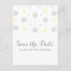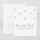 Cute och trendig Confetti Spara vykortet för datum med roligt-konfetti i grått och gult. Det här enkla och moderna datumet för att spara datumet kan enkelt anpassas med din information om bröllop. Hitta fler anpassningsalternativ genom att klicka på Anpassa.