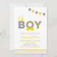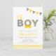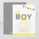 Fira din speciella dag med denna enkla moderna babyshower-inbjudan. Denna design har ett grått & gult buntingband med unik "Oh POJKE"-typografi med söta mönster och en slips. Fler färgalternativ och matchande föremål finns i min butik.