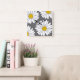 Grått Gult och vita Daisy Fyrkantig Klocka