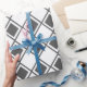 Denna papper har en modernt utformning i mitten av århundradet av fasta grått diamanter inuti grått-diamantkonturer på en fält av vitt.