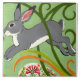 Grått-kanin på Grönt Art Deco Designer Tile Trivet Kakelplatta