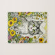 Grått Kattunge Sitta i Blommor Pussel