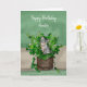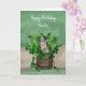 Personligens födelsedagskort för mormor. Cute kitten grått kitten sitta i en hink växter.