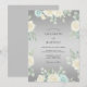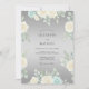 Ömtåliga krämfärgade och blekt blåa blommor pryder en mjuk grå bakgrund och frammanar en känsla av skön romantik. Denna design har frodiga blomsterarrangemang och subtilt grönska, vilket skapar en elegant och lugn atmosfär för en speciell tillställning.