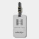 Grått-faux-läder som bakgrund. Anpassa och lägg till logotyp, namn och kontaktuppgifter för ditt företag. Svart text.