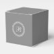 En personlig favör box i grått som innehåller ett monogram av vit lagrets andedräkt och anpassningsbar som du kan redigera med ditt eget monogram. Om du vill ändra teckensnittet eller om du behöver centrera monogrammet igen efter att du har ändrat det väljer du knappen "anpassa det". Den här förmånslådan är ett bra val för mottagningar, party, företagshändelser och mycket annat.