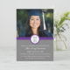 Studentfestens anpassningsbar bjuder in fotokort med ljusstark lila, grått av kol i mörken och vit modern design. Anpassa det här graderingskortet genom att lägga till året för studenten, dina egna foton och din studentfest.
