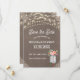 Grått Mason Burk Rustic Flower String Ljus Bröllop spara datum Du är gifta sig och vill lägga till några strålande, ljusfyllda beröringar till bröllop. Du ska med ett land-inspirerat tema och du vill att dina gäster ska få högernas intryck. Vårt bröllop spara datum-kort för burk är bara perfekt. Anpassa den med egna uppgifter och ställe din beställning. Behöver du hjälp? Släpp ett meddelande.