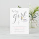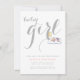 Eleganten grått i den sovande duschen i flicka-månen med minimal typografi som innehåller texten flicka i vitt på ljus grått-bakgrund och en flicka i rosa kläder med lite blått sovande på ett moln och gulten halvmåne. Det här moderna trendiget för snyggt och den söta mallen för minimalistisk personlig är helt och hållet anpassade. Du kan ändra bakgrunden till färg. En inslag av Trina Clark.