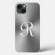 Grått metallic Fodral-Mate Phone Case Apple iPhone 13. Personligens mobila hölje med namn inledande och blank grått-bakgrund struktur. Trendig Birthday eller julklapp. Finns även för äldre modeller och andra varumärken. Anpassadet färg.