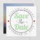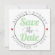 Mint grönt- och grått-typografi med rött hjärtefoto på baksidan av Spara datum meddelande