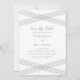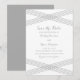 Enkel och elegant Modern Deco-spara datuminbjudan med en stripe-kor-skrafferad dekodesign i grått. Det här klassiska spara datum meddelande kan enkelt anpassas med dina bröllop-uppgifter. Om du vill ha fler anpassningsalternativ klickar du på knappen Anpassa.