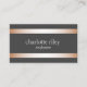 Elegant och imponerande affärskort med två linjer av ro FAUX-folie i rand. Anpassa framsidan med två linjer anpassningsbar text på chicens klassiska grått-bakgrund och lägg till kontaktuppgifterna för fullt på baksidan med hjälp av mallen. En chic för skönhetssalonger, hårfrisörer, mode boutiques, bröllopsfixararna, smyckesdesigner, insida-designer och .image-medvetna professioneller. Annan färg