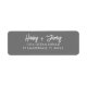 Grått-returetiketter med modernt skript. Anpassa med information och val av färg. Det här är definitivt vår favorit i fläkt och vi klandrar dem inte. Snyggt och chic med ett enkelt modernt utseende.