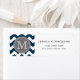 Grått Monogrammed Blue Chevron Returadress Etikett