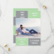 Blockkort för grått och mynta grönt färg bröllop spara datum. Baksidan innehåller en mönster med breda band i grått och mynta grönt.