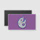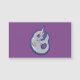 En gullig ljus - det gråa narwhal val med vitfläckar och hornbeta, stora nätt lilaögon och ett lyckligt leende med dess svan krullade upp på ett ljust - purpurfärgad bakgrundsfärg. Original- bläckteckning med ren grafisk linjer av Alicia Marie.