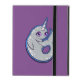 En söt lätt grått narwhal-val med vita fläckar och horntusk, stor söt lila ögon och ett lycklig leende med svan uppklämd mot en lätt lila bakgrund färg. Ursprungligt bläck-teckning med rent grafiskt linjer av Alicia Marie.