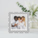 Festivt fyrkantigt helgdag-kort med familjens foto inramat i vitt med grått och vit nordisk snöflingerbakgrund. Anpassa det nordiska jullkortet för snöflingor med anpassningsbar hälsning och namn i grått-bokstäver. Kortet återgår till visning av ditt personliga meddelande.