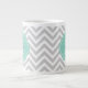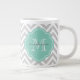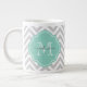 Grått och Aqua Chevron Anpassningsbar Monogram Jumbo Mugg