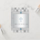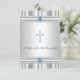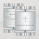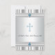 Elegant blå kors på en silvervit bakgrund kantad med två ljusblå dop-, dop- och dedikationsinbjudan för pojkar. Denna vackra blå och grå dopinbjudan för pojkar kan enkelt anpassas för din händelse genom att helt enkelt lägga till dina händelseuppgifter, teckensnittsstil, teckenstorlek och färg samt formulering.