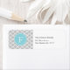 Grått- och Blue Quatrefoil Monogram-Adressetikette Returadress Etikett