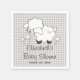 En vacker personlig av lammbabydusch i baby med papper napkin med ett ulllamm med hjärt- och grått- och vit gingham mönster bakgrund. Dessa anpassadets blöjor är perfekt för en könsneutral dusch i pojke eller flicka. Art © Chrissy H. Studios, LLC. Alla Höger reserverade.