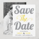Ultimate grått och lysande gult typografi och foto på Spara datum meddelande baksidan.