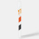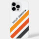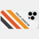 iphone case med tre diagonala rand i mörk grått och två skuggor orange på vit bakgrund och ditt eget namn i ett fet, modernt sans serif-teckensnitt.