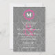 Grått och Rosa Damask Monogram Bröllop V027B Inbjudningar
