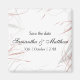 En snyggt- och chic-bröllop spara datum-kylskåp med personlig namn och datum, med en mycket elegant utformning av silver och grått blomning och dammande rosa snurrar längs kanten.