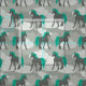 Har ett mönster av statliga unicorns i mörk charkol grått med grönt och svan mot bakgrund av snurrande grått moln.