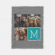 Grått och Teal Square 3 Photo Collage Monogram Fleecefilt
