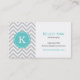 Grått och turkos Chevron Anpassningsbar Monogram Visitkort