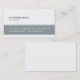 Modern yrkesmässig elegant grönaktig enkel vanlig anpassadevisitkort för grått och för vit. Ideal för Makeupkonstnärer, Cosmetologists, inre dekoratörer, modeformgivare, hårstylister, frisörer, Beauticians, nageltekniker, revisorer, fastighetsmäklare, advokater, fastighetsmäklare, advokater, mäklare och företags professioneller.