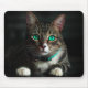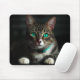 Grått och vit katt med blå Öga och matchande färgk Musmatta