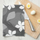 Grått- och vitblommor. Blom- modell Kökshandduk