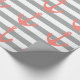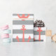 Grått och vit stripe mönster med nautiska ankarplats för rosa av korall papper. Konstruktionen har ett grått och vitt rand mönster och ett nautiskt korallusiskt rosa-ankare.