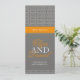 Dubbla-sidig enkel grått- och orangens bröllopsmiddagsmeny. Anpassa med dina detaljer.