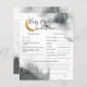 Roligt över temat måne: könsneutrala förutsägelser och avrådningskort för babydusch i baby med en vattenfärgskonst av grått himlar med faux guld glansig måne. Texterna kan redigeras. Perfekt som ska spelas under duschen och som definitivt kommer att vara en underbar keepy! Kortet ber gästerna att förutsäga hur baby skulle se ut.