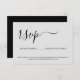 Skapa en strömlinjeformad OSA processaa för bröllop med denna minimalistiska reserverade sittplats OSA kort. Eleganten grått och svart design framhäver enkelhet och sofistikering, skapar det som ett val av perfekt för modernt bröllop. Med fokus på effektivitet kan du med detta kort ange hur många gäster som bjuds in per hushåll. Genom att rikta gästerna till bröllop webbplats för sin OSA undanröjer du behovet av att skicka tillbaka svarskortet och sparar tid och arbete för båda party. Den minimalistiska utformningen ser till att den viktigaste informationen blir tydlig, medan paletten grått färg tillför lite elegans. Rent linjer och enkel typografi förbättrar kortets totala estetiska chic. Genom att ta med webbplatsen bröllop ger du gästerna ett bekvämt och lättillgängligt sätt att ta del av OSAN och få tillgång till ytterligare uppgifter om bröllop. Denna moderna strategi för hantering av OSA möjliggör en smidig samordning och organisation, skapar processaa smidigare planering för dig och dina gäster. Se till att era reserverade sittplatser redovisas korrekt genom att använda denna minimalistiska OSA kort. Dess enkelhet och funktionalitet gör det till ett praktiskt val för par som värdesätter effektivitet och stil. Kontakta mig om du behöver hjälp med den här designen på info@lddesignloft.com