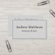 Elegant, enkel, professionell, affärskort för anpassade för företag och advokater med stil med vanligt teckensnitt på en solid grått-bakgrund. Urvalstexten visas för en advokat i lag, men det är också perfekt för fotografer, konstruktörer i mode, dekoratörer och andra yrken i kreativet.