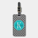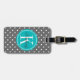Grått Polka Punkt med Teal Monogram Bagagebricka