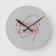 Grått Red Ditt namn - första monogram Modern Rund Klocka