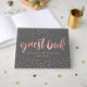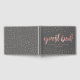 Guestbook i mörk grått och ro guld med söt penselskript.
